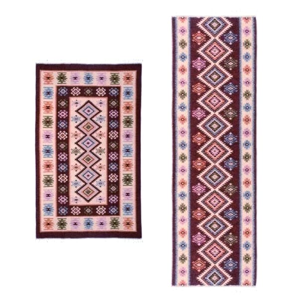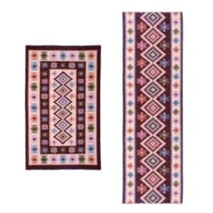 1+1 Covoare traditionale, dimensiunea 120x180cm+ 60x120cm, maro si crem, model ROMB