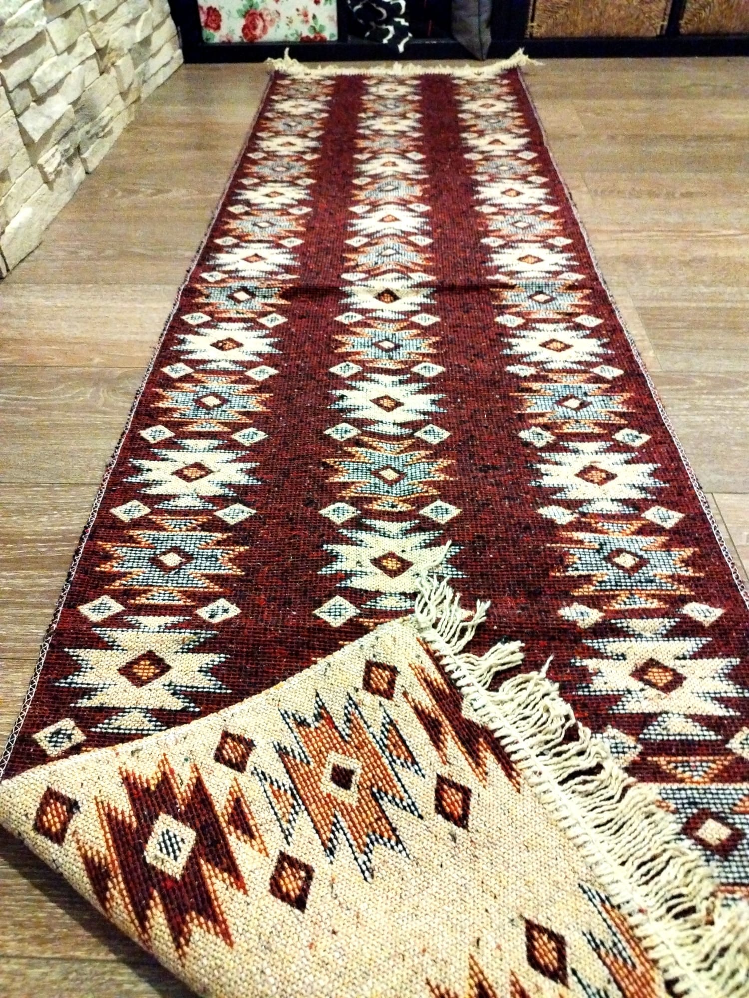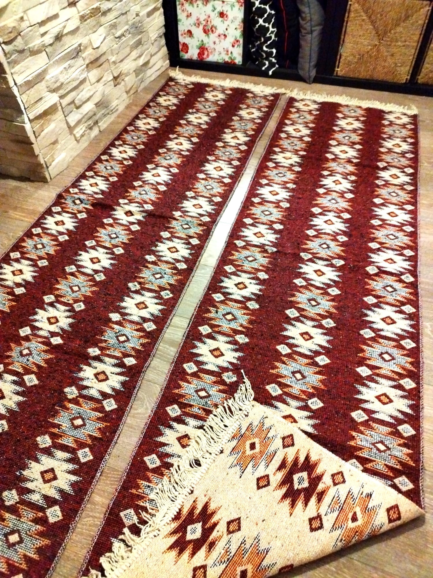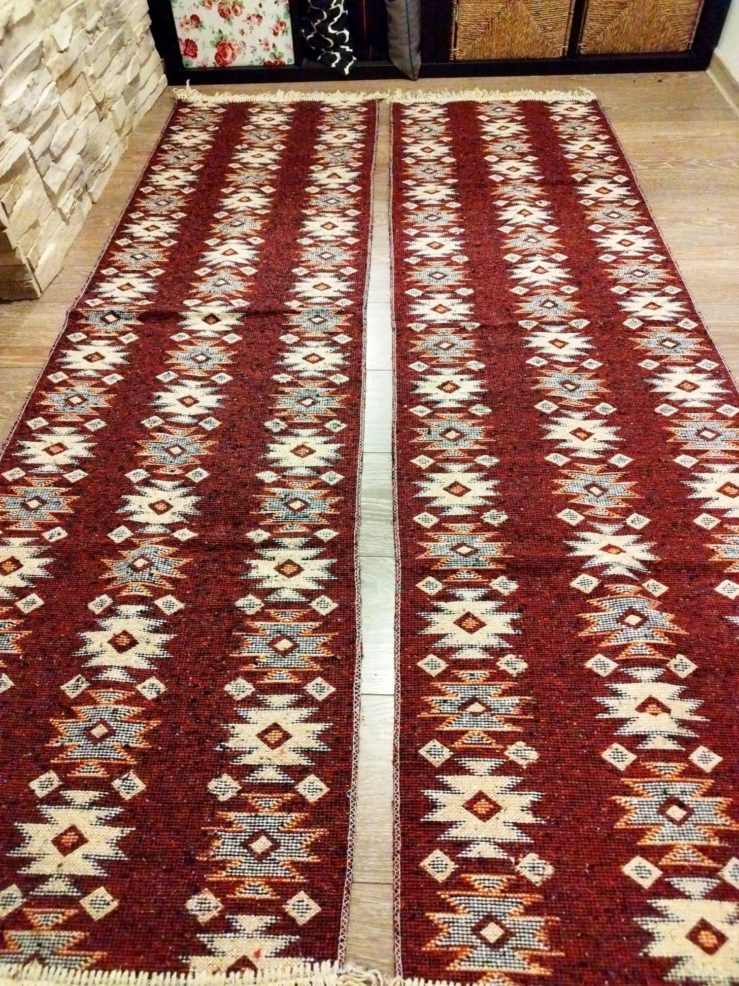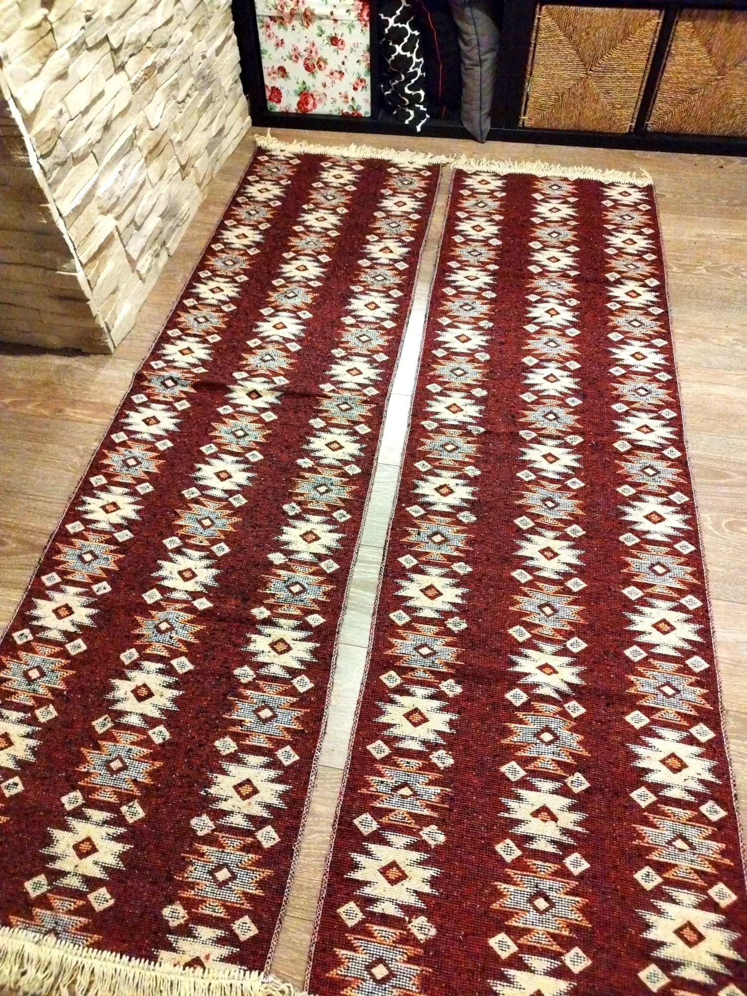 1+1 Covoare traditionale, dimensiunea 60x200cm, Rosu si crem, model Rustic 2