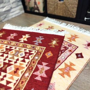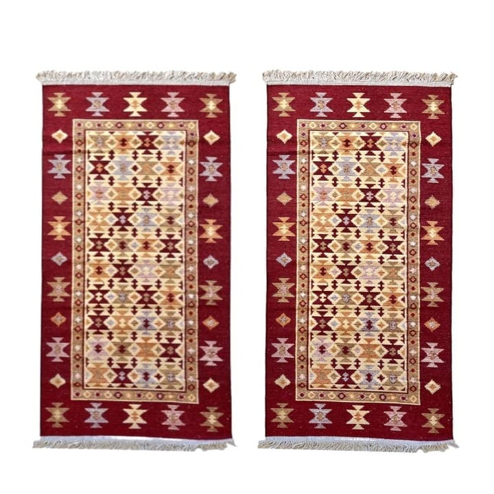 1+1 Covoare traditionale, iuta, dimensiunea 80x120cm, rosu si crem, H&H93