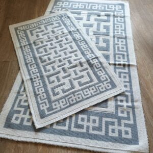 1+1 Set Covoare tesute din bumbac, dimensiunea 1 bucata 60x100cm+1 bucata 100x200cm, gri si alb, cod CB06A