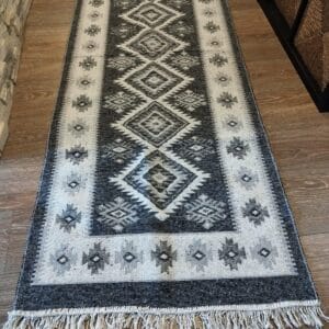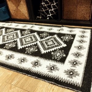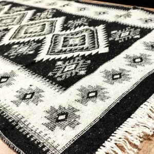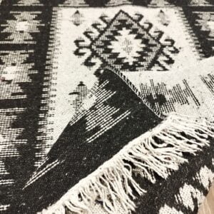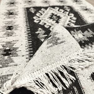 Covor traditional, cu doua fete, dimensiunea 80x125cm, gri si alb, model ROMB