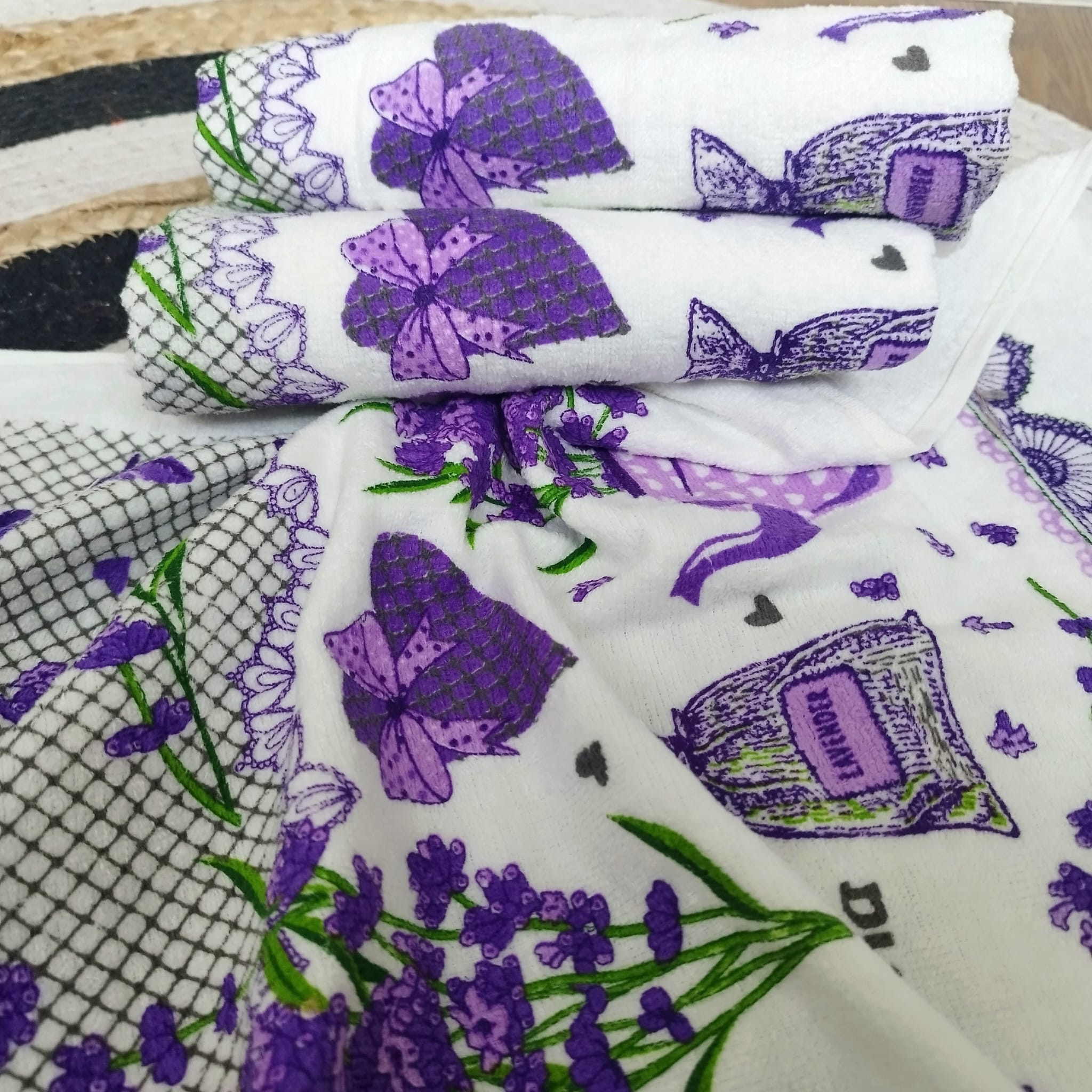 Set 3 prosoape pentru bucatarie, bumbac 100%, dimensiune 40x60cm model cu lavanda