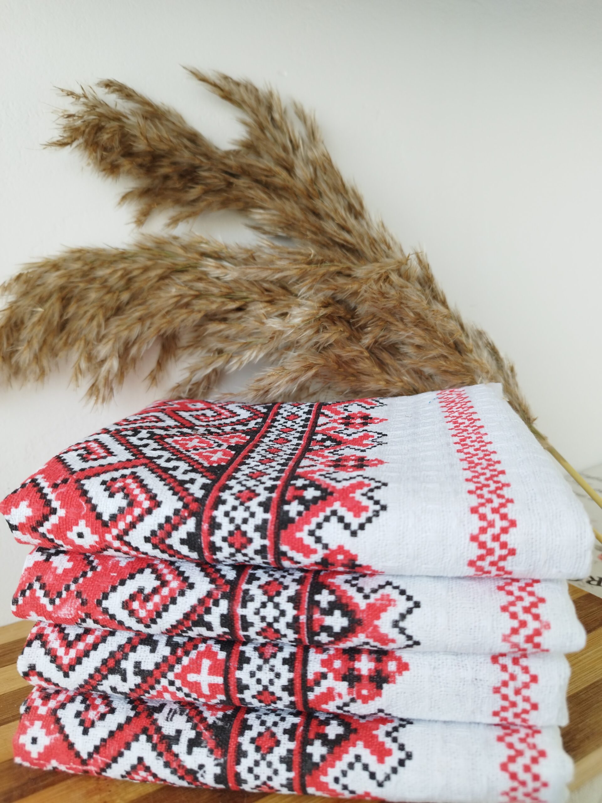 Set 4 prosoape pentru bucatarie, bumbac 100%, tesatura fagure, 40x60cm model Traditional Rosu